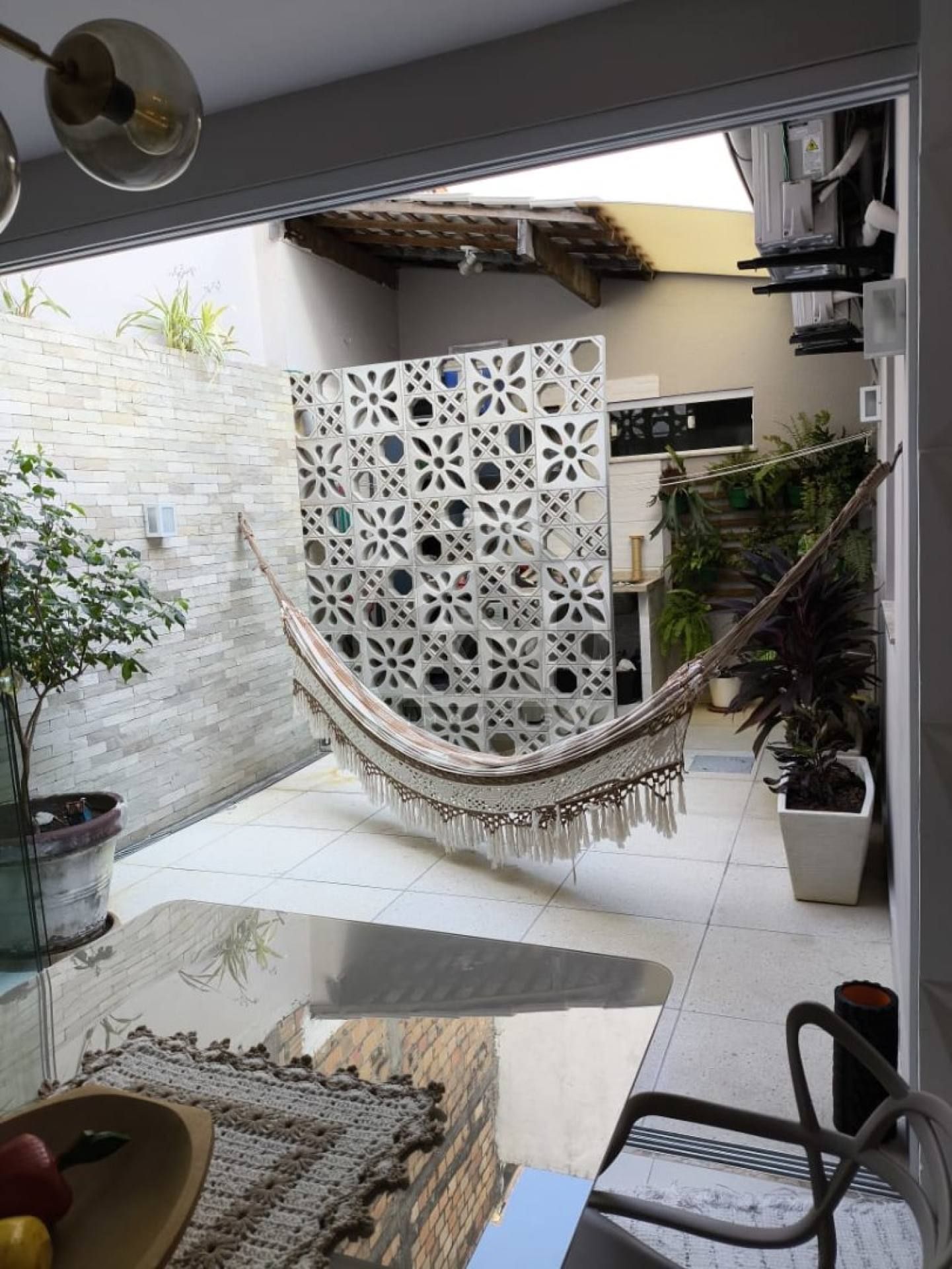 -Espaço na frente com jardim e pergolado;